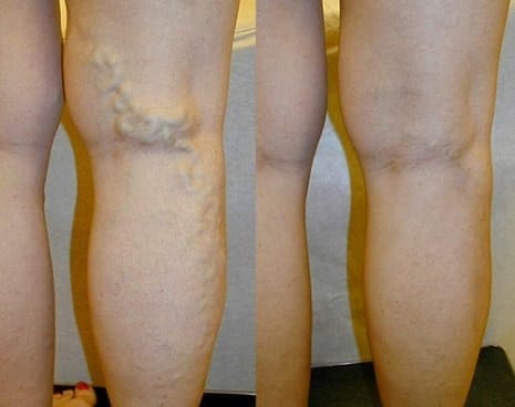 Las venas se han recuperado por completo. Período de tratamiento: 2 semanas.